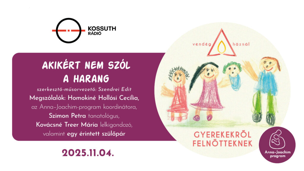 A Kossuth Rádió Vendég a háznál című műsorában „Lelki megsegítéssel a gyermekáldásért” címmel esett szó az AnnaJoachim-programról (2022. 11. 10. 11:32 – 11.55)
